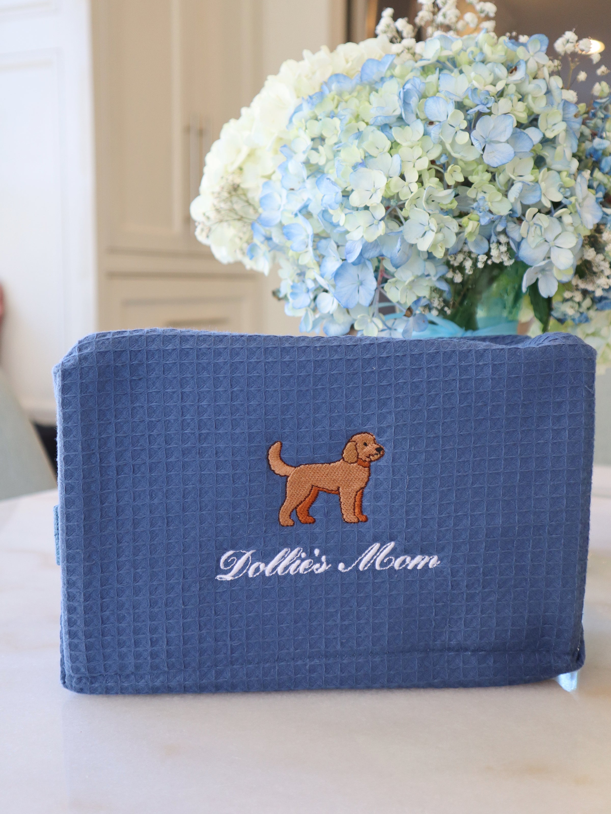 My experience with McKwurst Designs is a SOLID five stars. McKinnon helped me choose the perfect font and matched the thread color perfectly for my item. Everything came beautifully packaged and sooner than expected. I can’t wait to order more items. Next on my list are the coasters and the wine bags.
